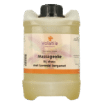 Massage-olie bij stress met bergamot en lavendel in een basis van 10% jojoba en 90% amandelolie.