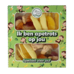 glucosestroop, suiker, water, vruchtensappen uit concentraat (5%): druif, banaan (2,1%), gelatine, zuurteregelaar (citroenzuur), verdikkingsmiddel (pectines), smaakstoffen, glansmiddel (carnaubawas), kleurstoffen: (E100, E140, E150a, E160c, vlierbessenconcentraat).