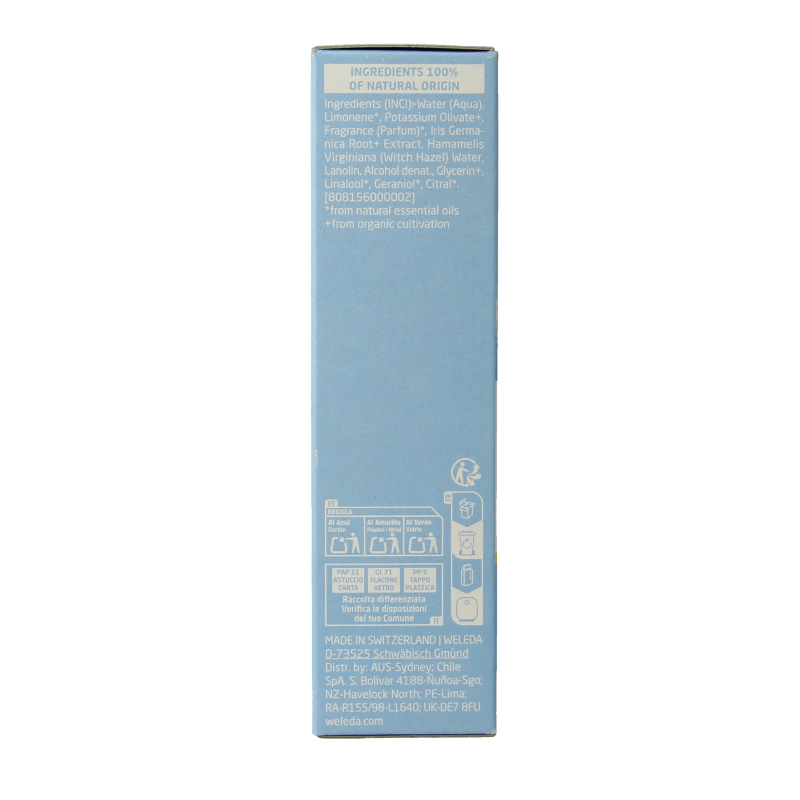 Water (Aqua), Limonene*, Potassium Olivate+, Fragrance (Parfum), Iris Germanica Root+ Extract, Hamamelis Virginiana (Witch Hazel) Water, Lanolin, Alcohol denat., Glycerin+, Linalool, Geraniol*, Citral*. [808156000002]
