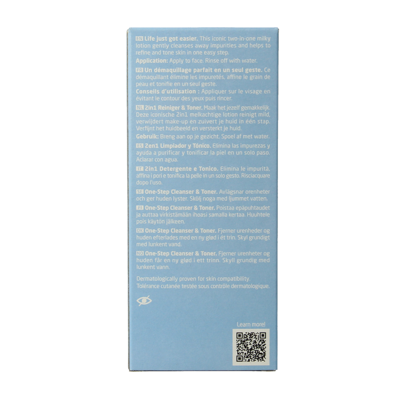 Weleda 2-in-1 Reiniger & Toner is een melkachtige lotion die huid op milde wijze in één stap reinigt en de huid tot diep in de poriën zuivert. De lotion met o.a. natuurlijk verzeepte olijfolie en biologische Hamamelis verwijdert make-up effectief en verfijnt het huidbeeld.
