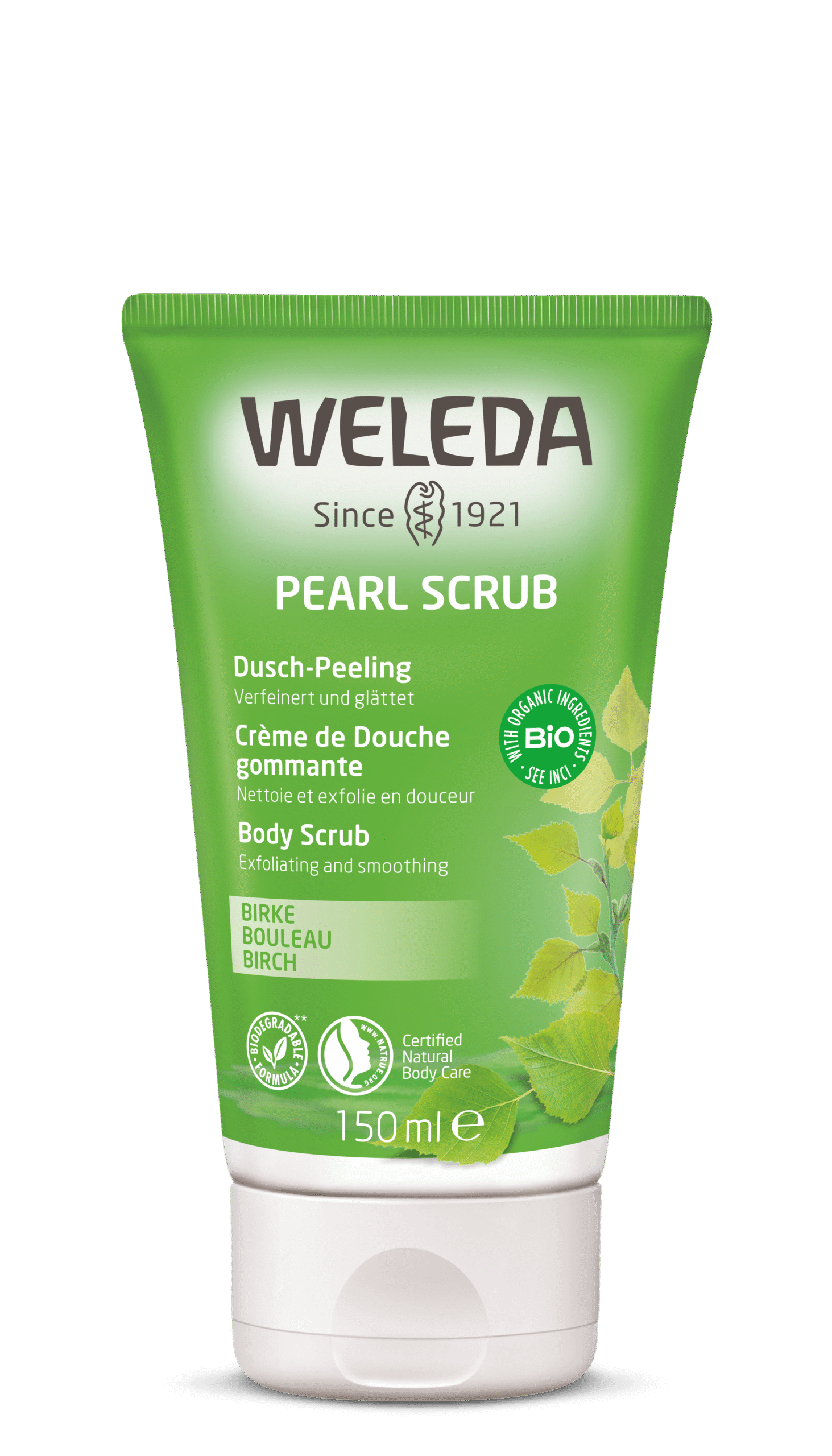 Berken Pearl Scrub Douchecrème is een scrub met berkenblad-extract die bijzonder mild is en het huidbeeld verfijnt. Door licht in te masseren stimuleren de fijne wasparels, gemaakt van carnauba- en bijenwas, de microcirculatie van de huid – zonder de vitale huidcellen te beschadigen. Abrikozenpitolie en biologische sesamolie verzorgen intensief. Je huid wordt soepel, zijdezacht en zichtbaar gladder.