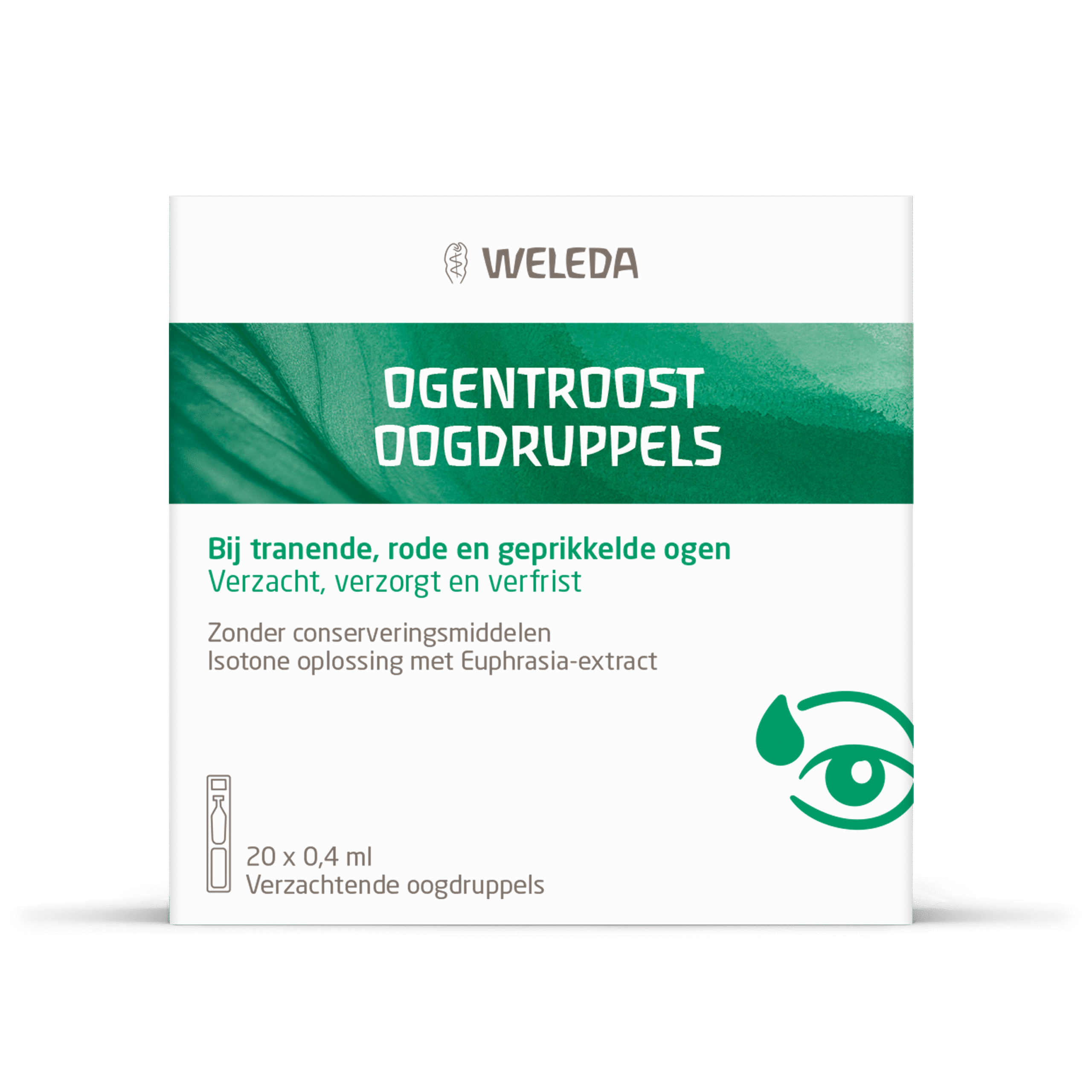 Gebruik Ogentroost Oogdruppels bij tranende of rode ogen door pollen, vuiltjes, zon, wind of chloor van zwembadwater. De oogdruppels verzachten, verzorgen en verfrissen de ogen direct en kunnen langdurig gebruikt worden.