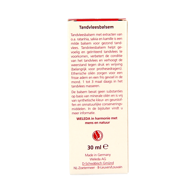 Een lichte massage met Tandvleesbalsem geeft verlichting bij rood en gevoelig tandvlees en werkt preventief. Regelmatig masseren met de balsem maakt het tandvlees sterk en bestendig tegen bijvoorbeeld de druk en de wrijving die dikwijls wordt veroorzaakt door gebitsprothesen.