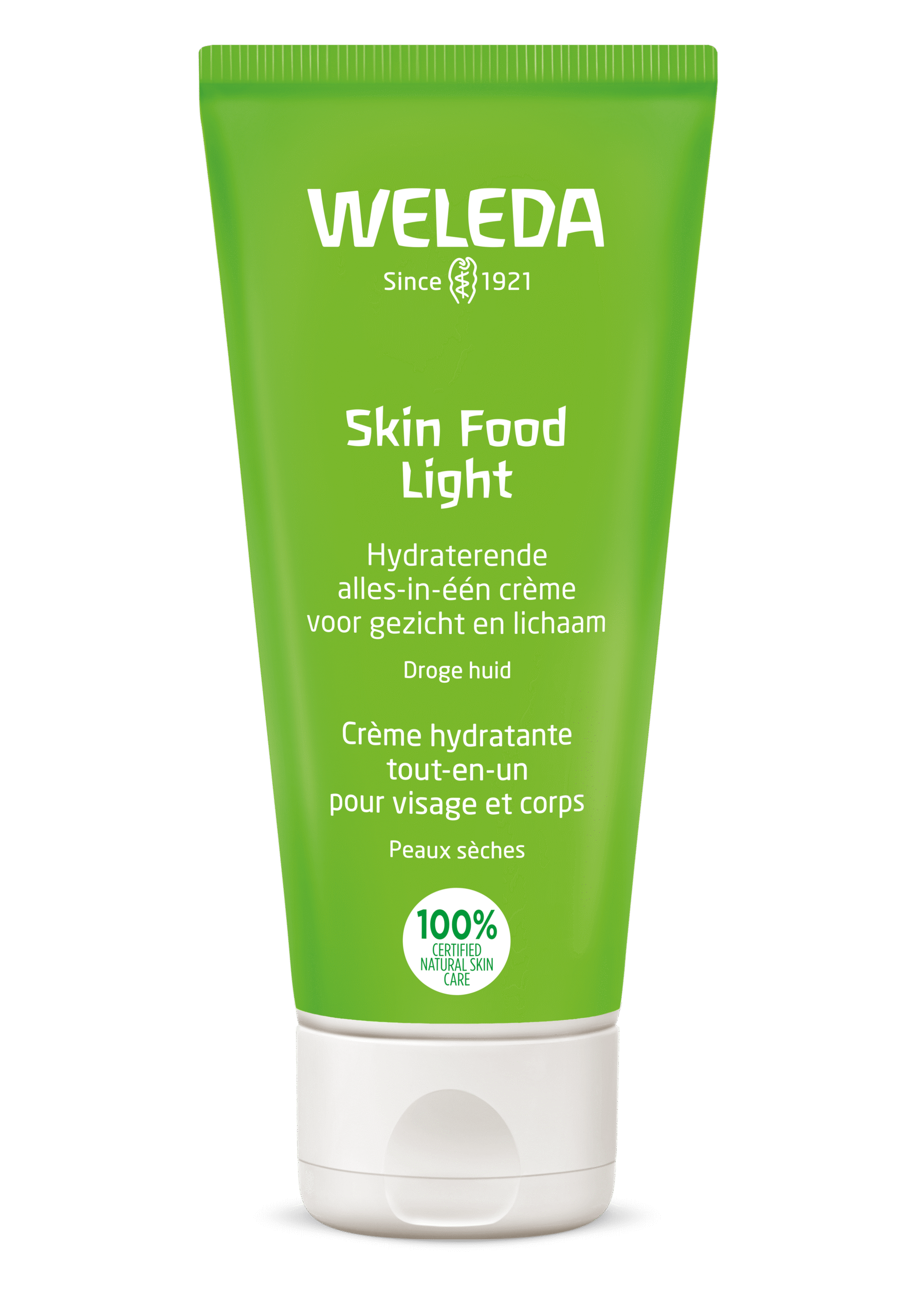 Skin Food Light is een welkome dorstlesser voor de droge huid. Ze biedt namelijk onmiddellijke hydratatie en comfort door haar lichte, snel intrekkende formule. Het geheim van deze crème is de combinatie van biologische zonnebloemolie met o.a. driekleurig viooltje, kamille en Calendula. De crème hydrateert de huid langdurig en herstelt de barrièrefunctie.