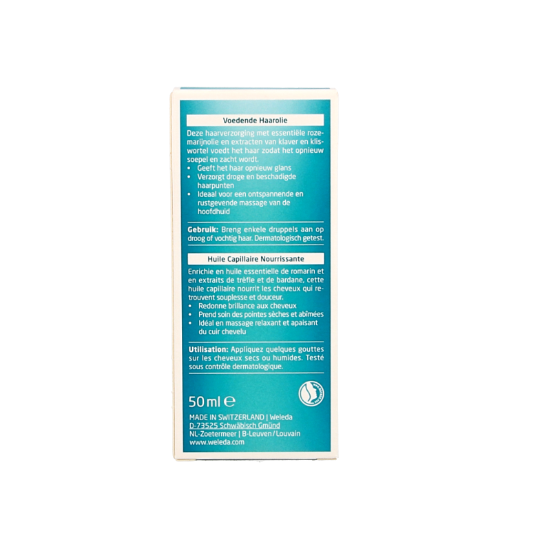 Voedende Haarolie met natuurlijke etherische rozemarijnolie en extracten van klaver en kliswortel verzorgt het haar intensief zodat het weer soepel en zacht wordt. Het haar gaat glanzen en krijgt extra veerkracht. Ideaal voor de verzorging van droge en beschadigde haarpunten.