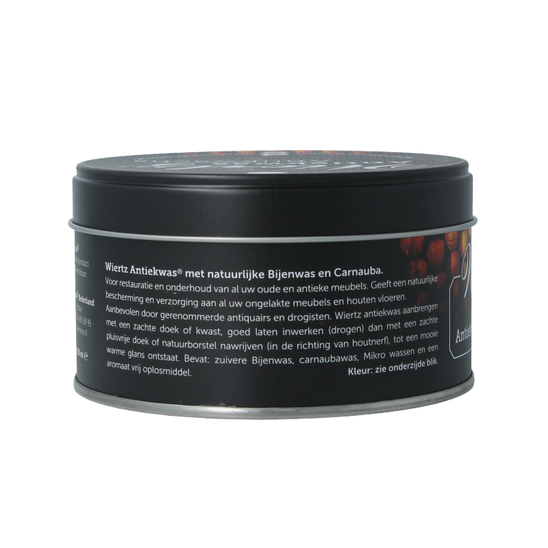 Wiertz Antiekwas wit. Voor restauratie en onderhoud van al uw oude en antieke meubels. Geeft een natuurlijke bescherming en verzorging aan al uw ongelakte meubels en houten vloeren. Uitermate geschikt voor het bijkleuren van uw hout. Aanbevolen door gerenommerde antiquairs en drogisten.