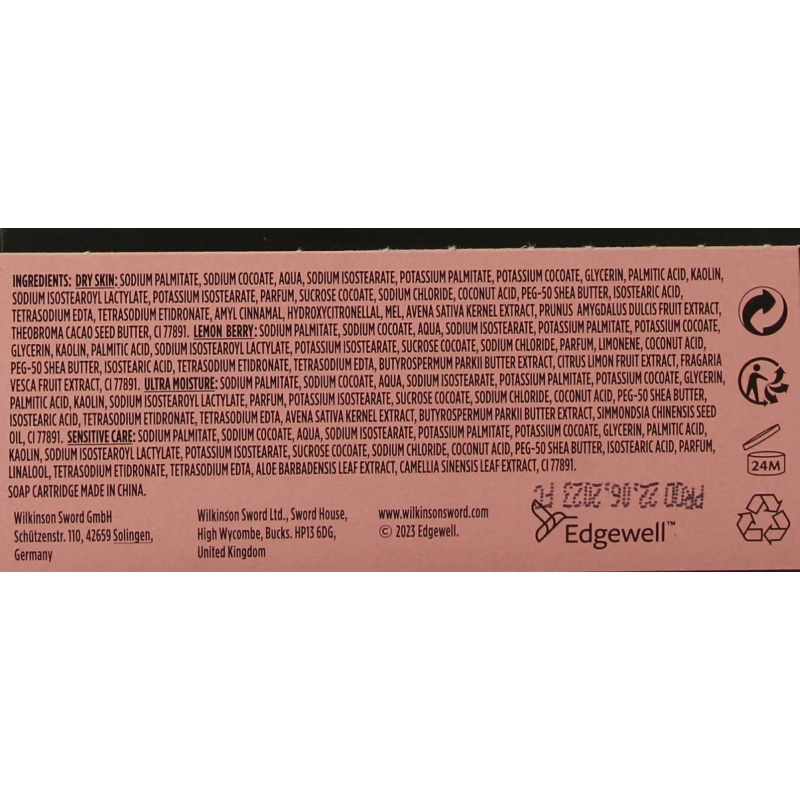 – Deze verpakking bevat 4 varianten navulmesjes: Ultra Moisture met sheaboter, Dry Skin met kokosmelk en amandelolie, Lemon Berry met citrus limoenextracten en Sensitive Care met Aloë Vera, vitamine E en Provitamine B5.