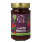 Dit fruitbeleg is bereid met 50% cranberry en wordt gezoet met geconcentreerd vruchtensap.