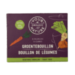 Zout, maiszetmeel*, palmvet*, groenten* 10.5% (in wisselende verhouding: Ui*; Pastinaak*; Prei*; wortel*), Kruiden* (Lavas*; Peterselie*), Specerijen* (Nootmuskaat*; Kurkuma*; Knoflook*; Peper*)